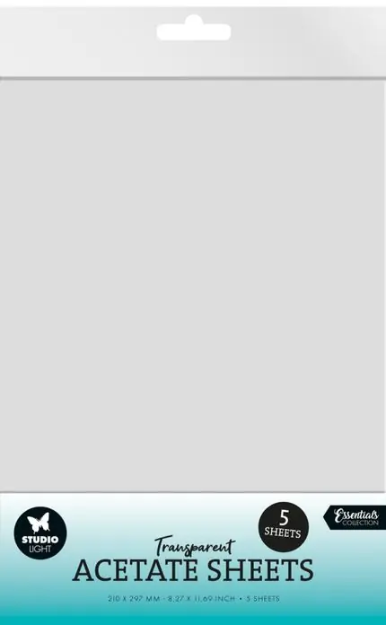 5 Velletjes transparante acetaat folie. Gebruik het transparante acetaat voor het maken van shaker cards of andere creatieve toepassingen. Onderdeel van de Studio Light collectie.